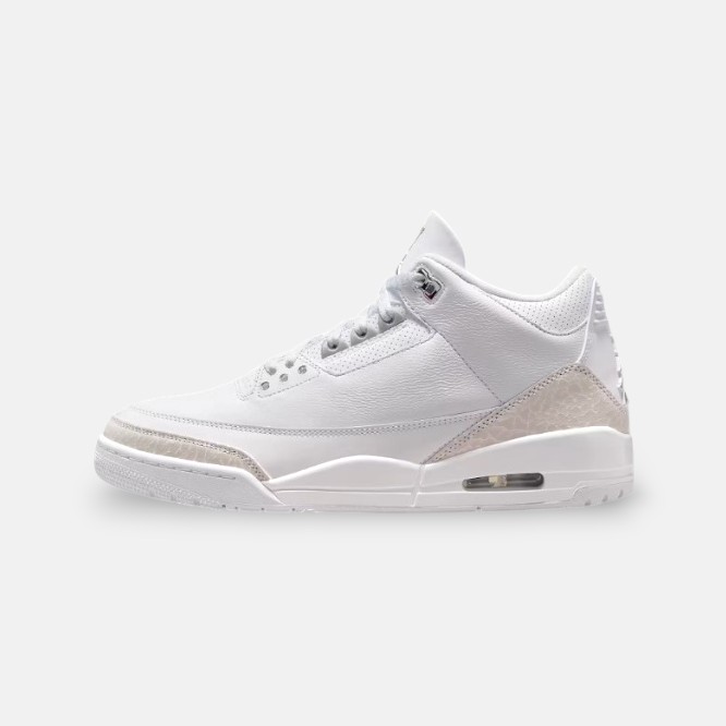 Las Air Jordan 3 Retro “Pure Money” para hombre son una auténtica joya para los amantes del baloncesto y de la moda urbana. Este modelo legendario, que marcó un hito en la historia de Jordan Brand, combina historia, estilo y rendimiento en un diseño icónico. Su estética totalmente blanca con detalles metálicos plateados las convierte en un imprescindible para quienes buscan unas sneakers con presencia, versatilidad y un fuerte valor cultural.